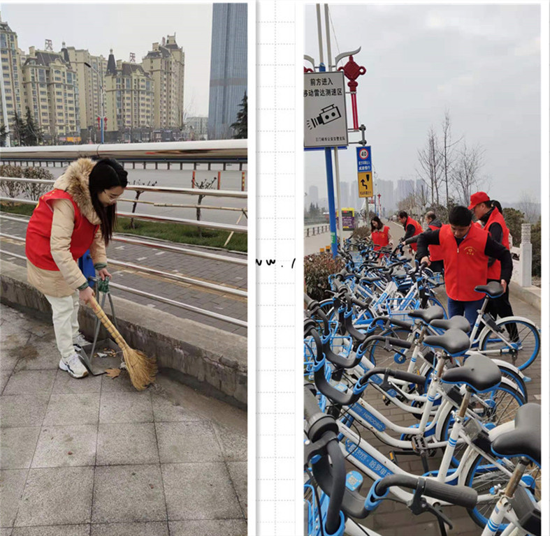 1月11日下午,万象城awcsport官网万象城awcsport官网组织22名志愿者,身穿志愿者服装,来到天鹅湖附近路段开展洁城活动。活动中,志愿者们分工协作,有的对车辆乱停乱放进行劝导,有的对共享单车重新整理摆放,有的认真打扫街区死角和清理草坪垃圾,捡拾绿化带花坛中的杂物。