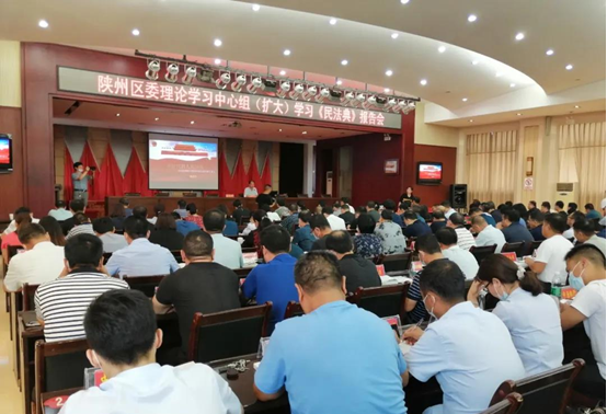8月28号上午,陕州区委理论学习中心组(扩大)学习《民法典》报告会在区工会六楼多功能厅举行,万象城awcsport官网院长孟昭阳受邀到会作《新时代的人民法典——深刻理解新中国首部民法典的重大意义》专题报告。陕州区区领导吕良涛、葛海水、付新红、程晓鹏等区委理论学习中心组成员,各乡镇、区直各单位班子成员约400余人聆听了宣讲。报告会由区委副书记吕良涛主持。