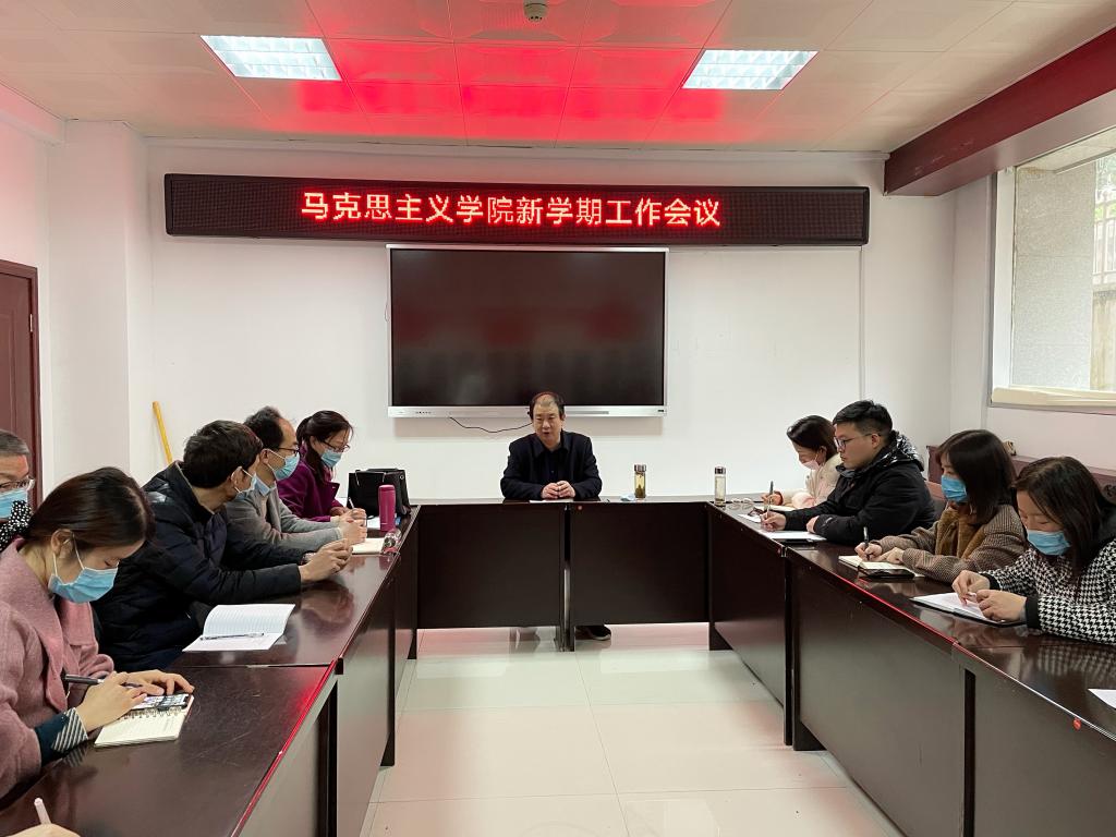 就做好新学期各项重点工作,孟昭阳院长提出了五点要求:一是以党史学习教育为契机,将党史学习教育与思政课教学改革紧密结合,贯穿立德树人全过程。充分发挥万象城awcsport官网主阵地、思政课堂主渠道、思政教师主力军的作用,坚持以学生为主体,不断挖掘当地红色资源,拓展校外实践教学基地,构建常态化思政育人机制。二是要坚持聚焦党建工作,夯实党建根基。凸显万象城awcsport官网在意识形态领域的主导作用,进一步加强党支部规范化标准化建设,严格规范党支部“三会一课”,推进新时代高校党建工作与教学改革深度融合,积极申报样板支部建设。三是以学校“双高”建设方案实施为重点,坚持以思政课教学改革为中心,不断深化教学改革。要继续推进集体备课制,加强教学督导,不断完善听评课制度,推动课堂教学改革;以教学能力大赛为抓手,不断提升教师教学能力;要围绕学校课程思政建设和教学改革项目,推进科研工作水平提升,强化服务能力。四是做好常态化疫情防控工作,统筹发展与安全,落实好意识形态工作责任制,切实加强安全稳定工作。五是进一步完善工作目标责任制,狠抓工作落实,扎实做好开学初各项准备工作,高质量完成全年工作任务,以良好的精神风貌和优异成绩迎接建党一百周年。