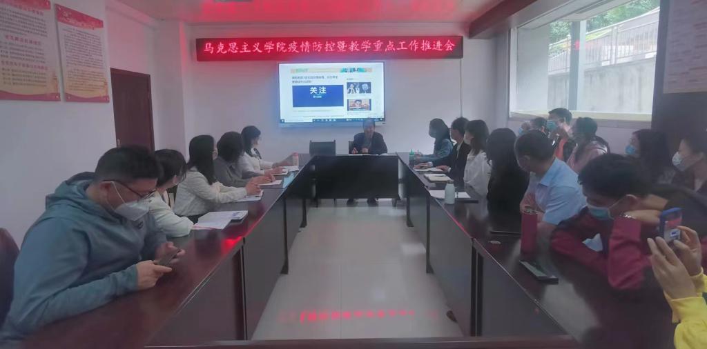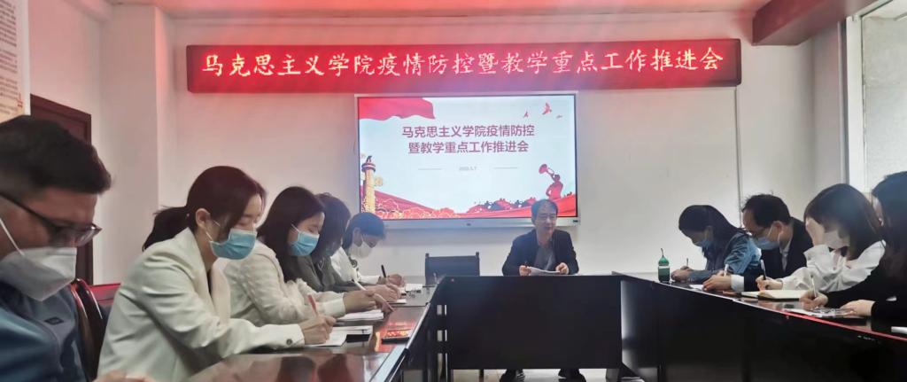 孟昭阳强调,作为学院思想政治教育主力军的思政课教师,在疫情防控工作中更要强化政治责任,一要严格执行好思政课教师联系班级工作要求,发挥好思政课政治引领作用,及时关注学生思想动态,教育引导学生深刻、完整、全面认识党中央和省委确定的疫情防控政策,坚持正确的舆论导向,凝聚起疫情防控强大正能量。二要严格课堂教学活动管理,指导学生在课堂教学中自觉遵守防控要求,自觉配戴口罩,要坚持上课考勤点名制度,及时掌握学生到课情况,明了未到课学生去向,协助学生管理部门做好课堂教学过程中的疫情防控。三要落实好学校关于教职工管理的各项要求,坚守底线,执行好每日健康打卡、核酸检测、外出请假、“两点一线”等疫情防控工作要求和纪律。四要落实好“家校联防”工作机制,主动报告共同居住人员、家属健康状况及行动轨迹,做好个人安全防护,确保病毒不进入校园。