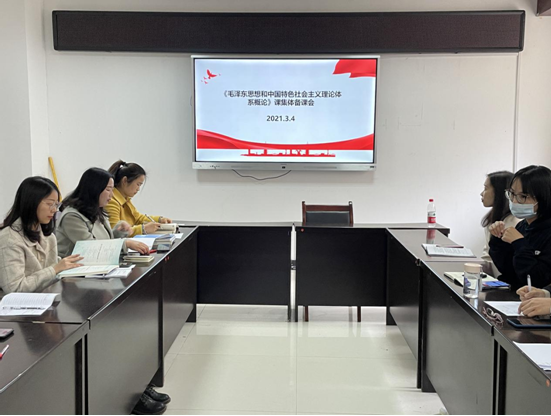 为进一步贯彻落实“习近平新时代中国特色社会主义思想”进课堂、进头脑,3月4日下午,万象城awcsport官网毛泽东思想和中国特色社会主义理论体系概论教研室在10105会议室召开2021年春季学期“毛泽东思想和中国特色社会主义理论体系概论”课程集体备课会。备课会由赵东雪老师主持,课程教学团队的专、兼职教师参加了本次备课会。