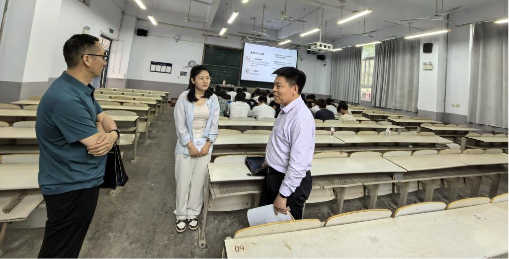 课后,调研组采取“随机访谈+电子问卷调研”的方式,围绕授课内容、授课方式、课堂互动、教学实效及用好《教学要点及参考资料》辅助教学、实践教学开展等方面与两位教师进行了深入研讨交流和“一对一”的现场指导,并针对教学目标的把握、课程内容的融会贯通、教学进度的把控、教材和教学体系的有效转化、学生关切的主动回应提出了建设性意见和建议。同时,调研组还随堂发放了电子问卷,全面了解学生对教学方法的接受度、思政课教师的认可度、思政课教材的满意度并与学生开展面对面访谈,听取了学生学习思政课的体验、收获以及对课程相关问题的看法。