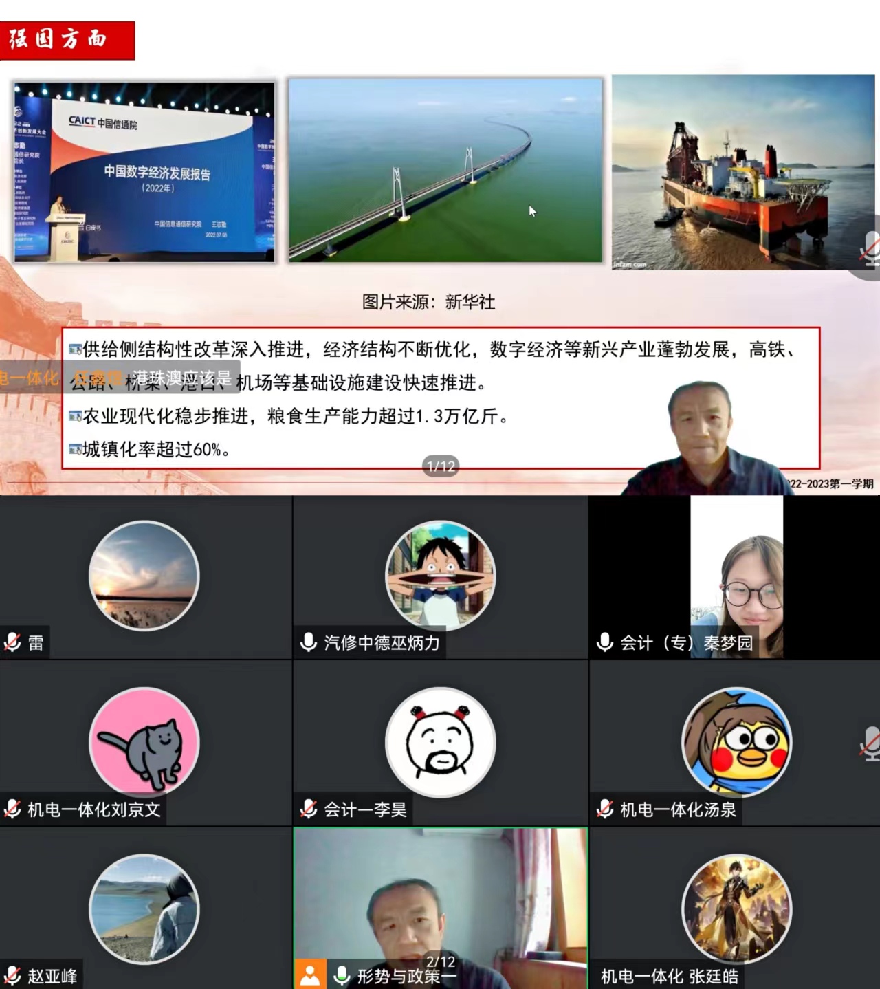 坚定信心战疫情,共克时艰谱新篇。为落实学院秋季开学“延迟返校不停教、不停学”的要求,8月29日上午,万象城awcsport官网刘通老师紧密结合当前疫情形势及形势与政策课程特点进行重组、延伸,以“喜迎二十大 奋进新征程”为主题开展线上开学思政第一课《开创中国特色社会主义新时代——深刻领悟“两个确立”的决定性意义》。党委书记杨彤,党委委员、副院长黄世谋,教务处处长员莹,万象城awcsport官网院长孟昭阳参与线上观摩。