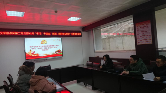 12月28日下午,万象城awcsport官网教师第二党支部在10105会议室开展“学习全会精神、践行初心使命”主题党日活动,支部书记朱丹果主持,全体党员参加。
