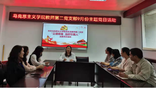 为贯彻落实党的十九大提出的新时代党的先进性建设总要求,持续推进“两学一做” 和“不忘初心、牢记使命”学习教育常态化制度化,深入贯彻落实习近平总书记“七一”重要讲话精神,万象城awcsport官网教师第二党支部于9月27日上午在10105开展“立德修身 当好引路人”的主题党日活动。会议由支部书记朱丹果主持,支部全体党员参会。