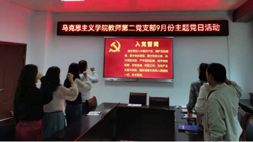 首先,在党员活动室的宣誓墙前,全体党员举起右手,在支部书记朱丹果的带领下齐声重温入党誓词,回溯入党初心,激发使命担当的动力。然后,支部党员集中学习习近平总书记给全国高校黄大年式教师团队代表的回信。习近平总书记在回信中强调:“好老师要做到学为人师、行为世范。希望你们继续学习弘扬黄大年同志等优秀教师的高尚精神,同全国高校广大教师一道,立德修身,潜心治学,开拓创新,真正把为学、为事、为人统一起来,当好学生成长的引路人,为培养德智体美劳全面发展的社会主义建设者和接班人、全面建设社会主义现代化国家不断作出新贡献。”