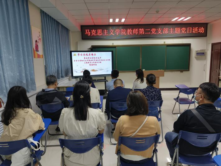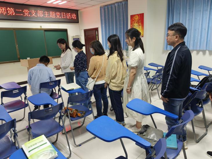 首先,支部全体党员在组宣委员李闯的带领下齐声重温入党誓词,回溯入党初心,激发使命担当。其次,全体党员诵读经典——《念奴娇·追思焦裕禄》,从焦裕禄精神中汲取前行的力量,进而达到凝心铸魂筑牢根本、锤炼品格强化忠诚、实干担当促进发展、践行宗旨为民造福、廉洁奉公树立新风的目标。然后,集体学习讨论习近平总书记在学习贯彻习近平新时代中国特色社会主义思想主题教育工作会议上的重要讲话。支部全体党员依次在党旗面前交纳了本月党费。最后,全体党员参观了心理健康教育中心 ,并通过沙盘游戏、仪器设备、绘画活动等方式体验心理赋能,不仅对心理健康教育中心的设备和功能有了进一步的了解,也帮助党员教师解决疑惑、疏解情绪、坚定信念。