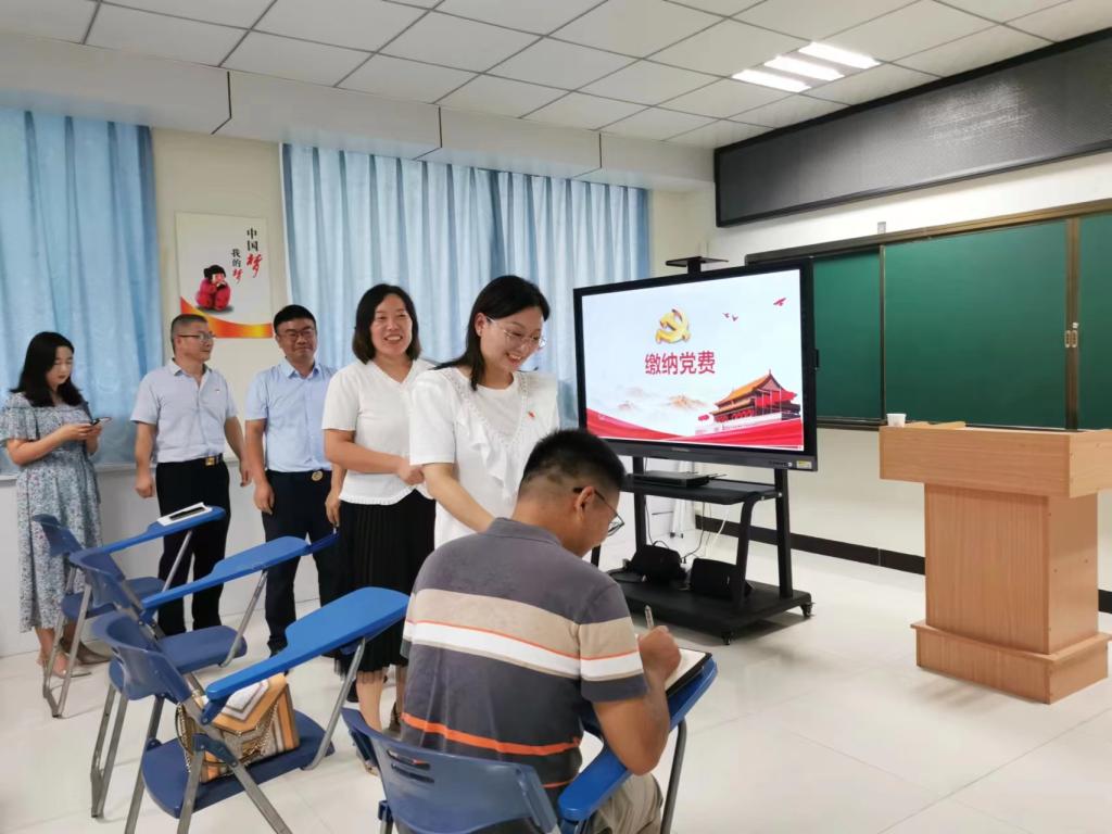 会议第一项为重温入党誓词。支部全体党员高举右拳,宣誓声铿锵有力,神圣而庄重,表达着对党的事业奋斗终身的决心,表达着不忘光辉历程,始终坚定跟党走的信心和决心。随后,全体党员依次排队郑重地向党组织交纳8月份党费,增强党性意识,履行党员义务。