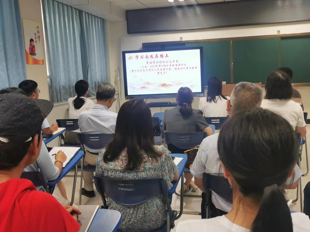 会议第三项为集体学习讨论《求是》杂志2023年第13期发表的习近平总书记重要讲话《努力成长为对党和人民忠诚可靠、堪当时代重任的栋梁之才》。参会同志们结合各自假期培训体会和新学期设想谈了自己的感悟与思考,纷纷表示一定要将总书记的重要讲话精神贯彻落实到新学期的各项工作中去,不断学习新知识、掌握新技能、开拓新思路、投入新实践,积极进取,开拓创新,充分发挥党员的先锋模范作用。