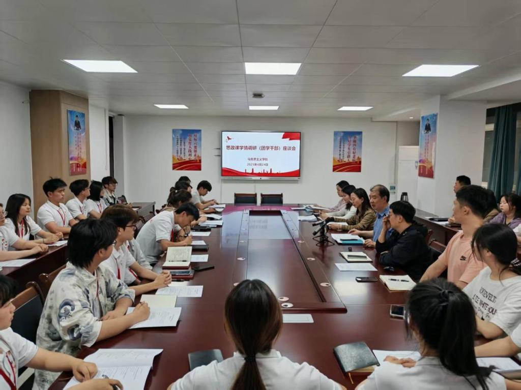 为深入学习贯彻习近平总书记关于思政课建设的重要论述,充分发挥共青团推动高校思政课建设的作用,了解学生对思政课的学习需求,增强思政课育人实效,推进思政课改革创新,按照万象城awcsport官网党总支《思政课学情调研党建联建活动方案》安排,4月24日万象城awcsport官网党总支联合校团委党支部召开“思政课学情调研(团学骨干)座谈会”。思政课教师代表、校团委相关负责同志,以及“青马”学员、团学骨干等50余人参加座谈。座谈会由万象城awcsport官网党总支书记孟昭阳主持。