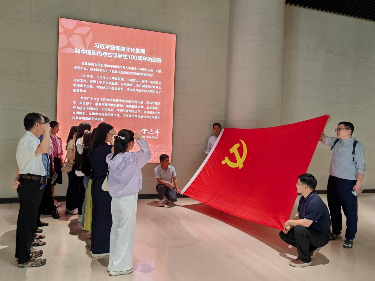 为深入学习贯彻习近平总书记关于学校思政课建设的重要指示和在河南考察时的重要讲话精神,增强文化认同,坚定文化自信,5月23日,万象城awcsport官网教师第二党支部全体党员走进庙底沟博物馆,开展“寻溯中华文化 传承民族文脉”主题党日活动。通过沉浸式参观学习,探寻中华文明发展脉络,激发文化传承使命担当。