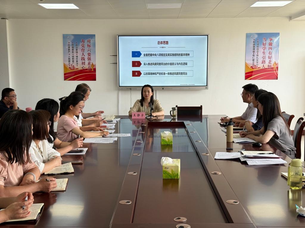 会上,党委委员、宣传和统战部部长王静宇以《严格落实中央八项规定及其实施细则精神 深入推进风腐同查同治》为题讲授专题党课,聚焦全面把握中央八项规定及其实施细则的基本精神、深入推进风腐同查同治的价值意义与内在逻辑、以改革精神和严的标准一体推进风腐同查同治三个方面,深入解读了中央八项规定及其实施细则的基本内容、中央八项规定精神的具体内涵及违反中央八项规定精神的具体表现,深刻阐述了立足风腐交织的现实危害作出的科学研判、基于风腐同查同治综合效用明确的实践路径、针对风腐一体交织阶段性特征确定的有效思路,深度把握一体推进风腐同查同治,强调要以“同查”严惩风腐交织问题,在“查”上动真格,以“同治”铲除风腐共同根源,在“治”上见真章,以“查”“治”贯通阻断风腐演变,在“同”上谋新篇,以大数据信息化赋能正风反腐,在“效”上求突破。
