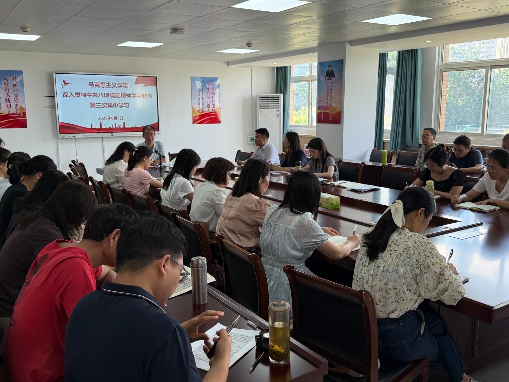 为推动深入贯彻中央八项规定精神学习教育见行见效,增强党员纪律意识,持续改进工作作风,根据学校党委安排部署,6月5日上午,万象城awcsport官网党总支召开全体党员大会,开展深入贯彻中央八项规定精神学习教育第三次集中学习,党委委员、宣传和统战部部长王静宇出席会议并讲授专题党课。会议由党总支书记孟昭阳主持。
