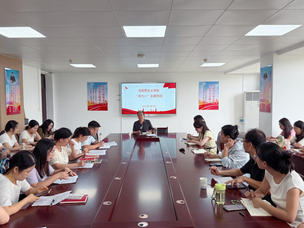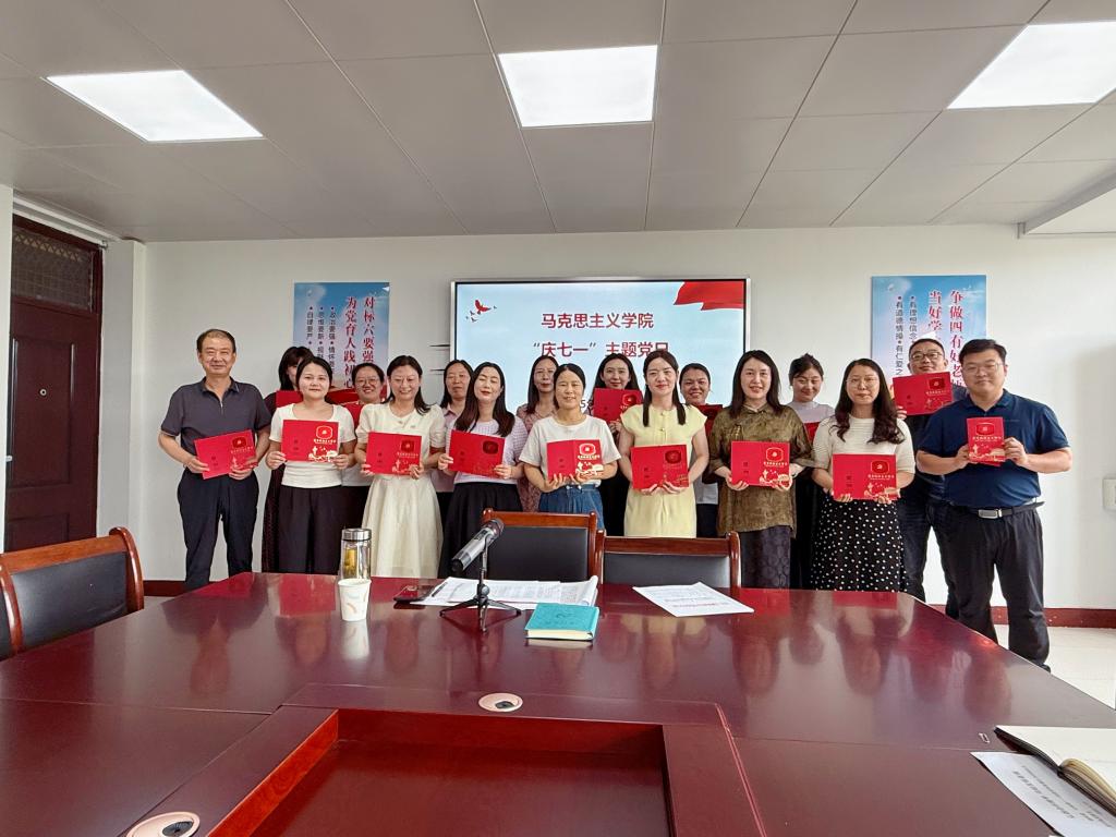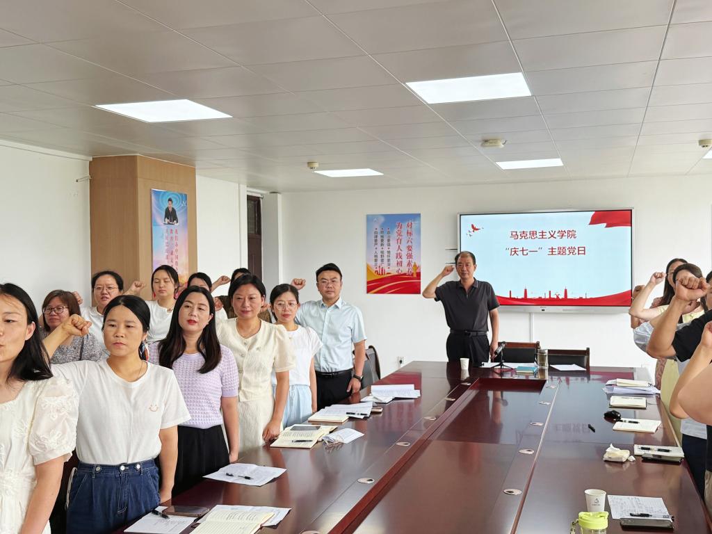 为推动深入贯彻中央八项规定精神学习教育落地见效,聚焦主责主业发挥先锋模范作用,凝聚推动工作的强大合力,在中国共产党成立104周年之际,7月1日,万象城awcsport官网教师第一党支部和教师第二党支部联合开展庆“七一”主题党日活动,活动由万象城awcsport官网党总支书记、院长孟昭阳主持,全体党员参加活动。